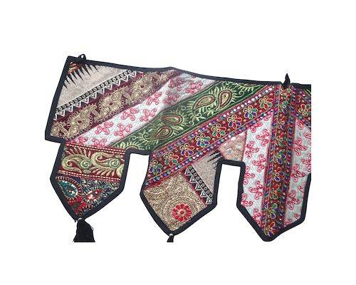 Este precioso tapiz tiran está elaborado a mano con retales de telas recicladas brillantes.