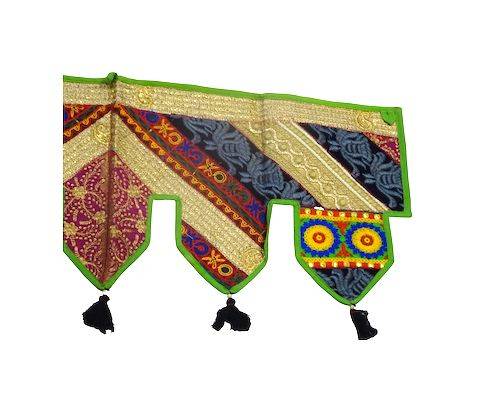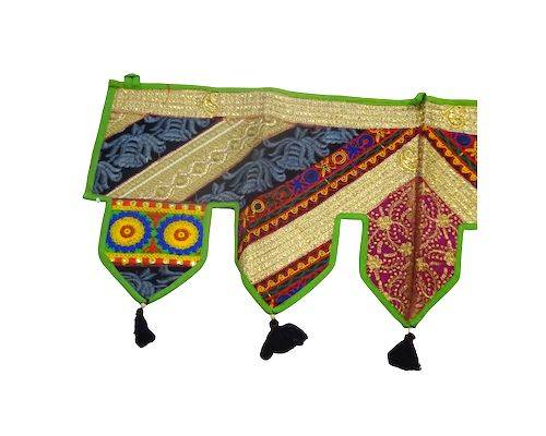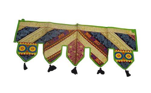 Este precioso tapiz tiran está elaborado a mano con retales de telas recicladas brillantes.
