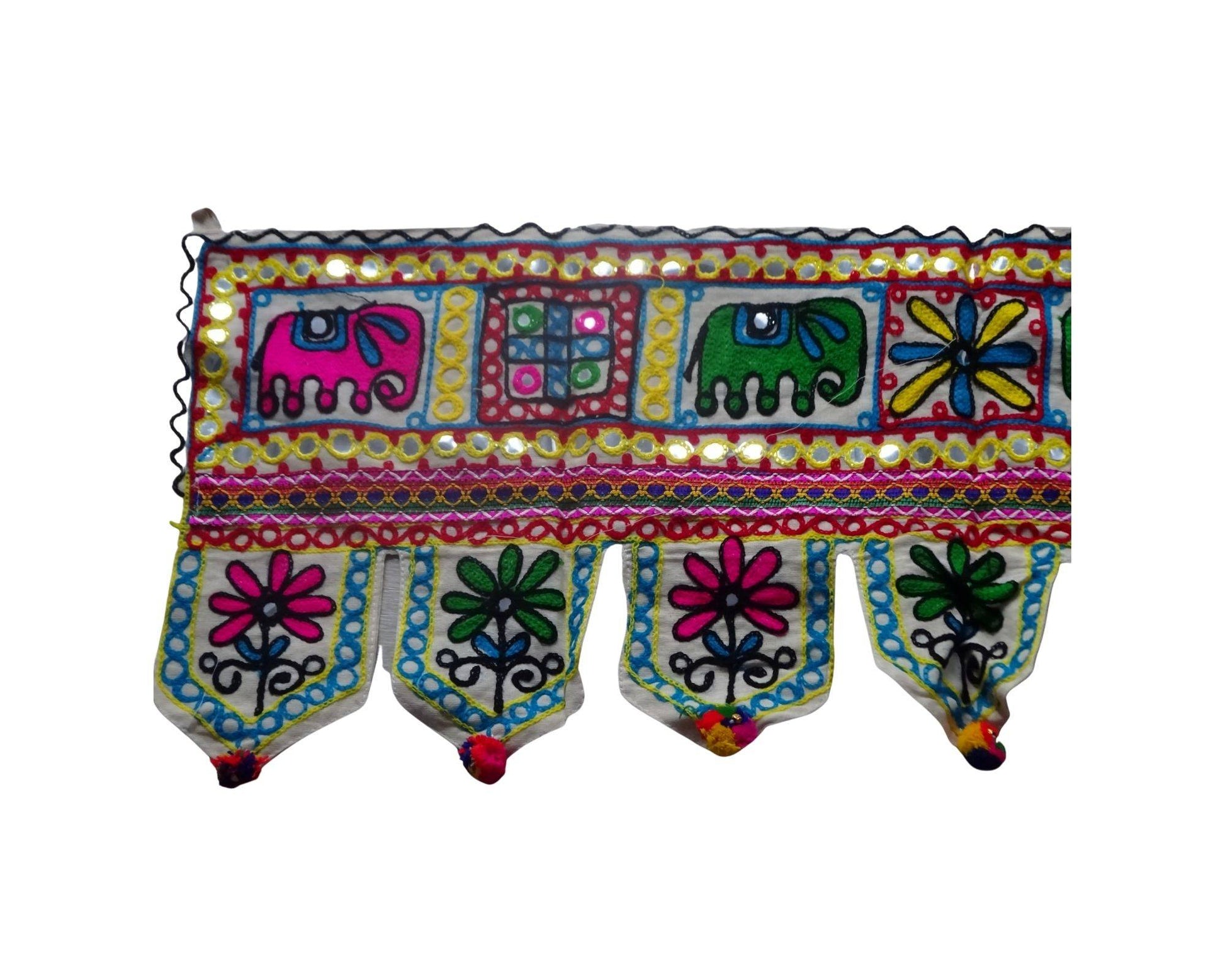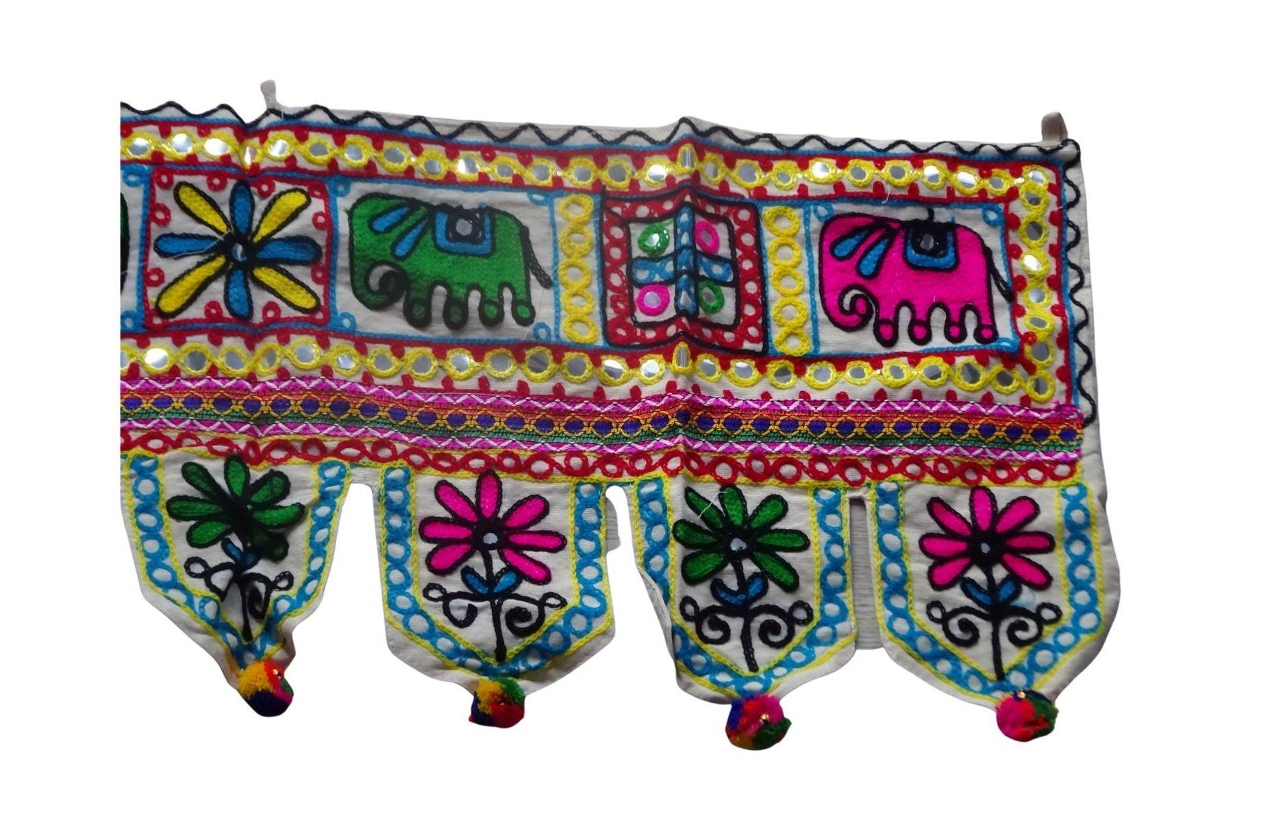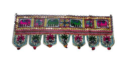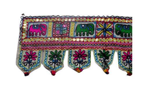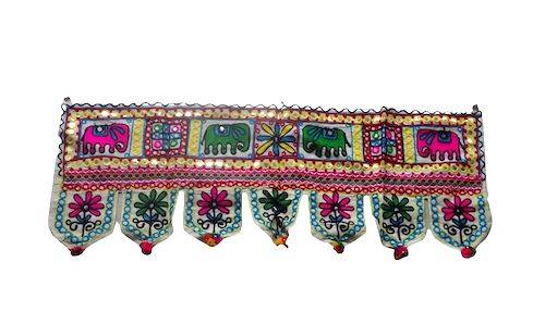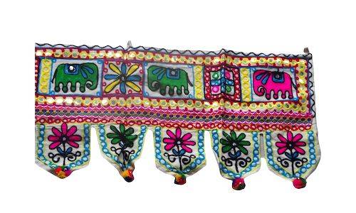 Tapiz toran étnico bordado con elefantes importado de india mediante comercio ético.