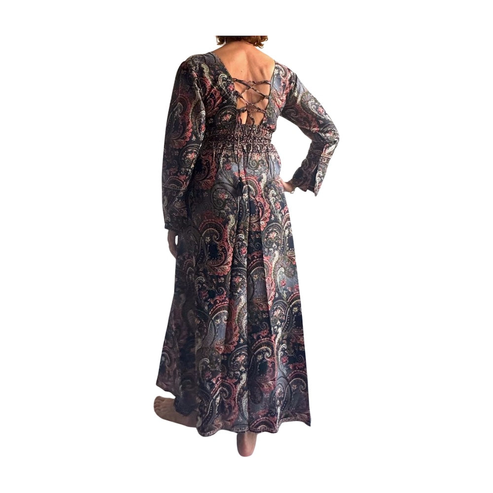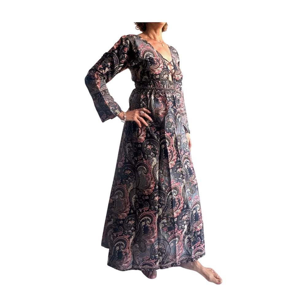 Vestido indio estampado de seda importado de India mediante comercio ético.