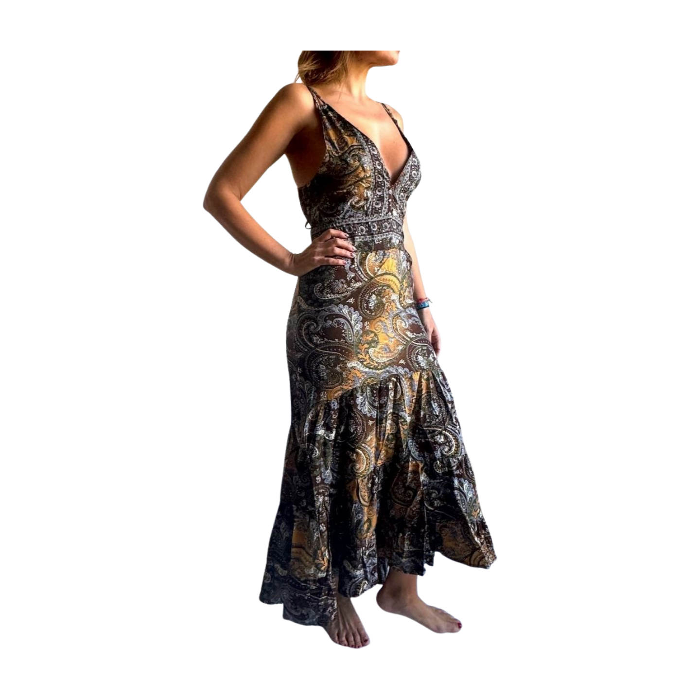 Vestido indio estampado de seda